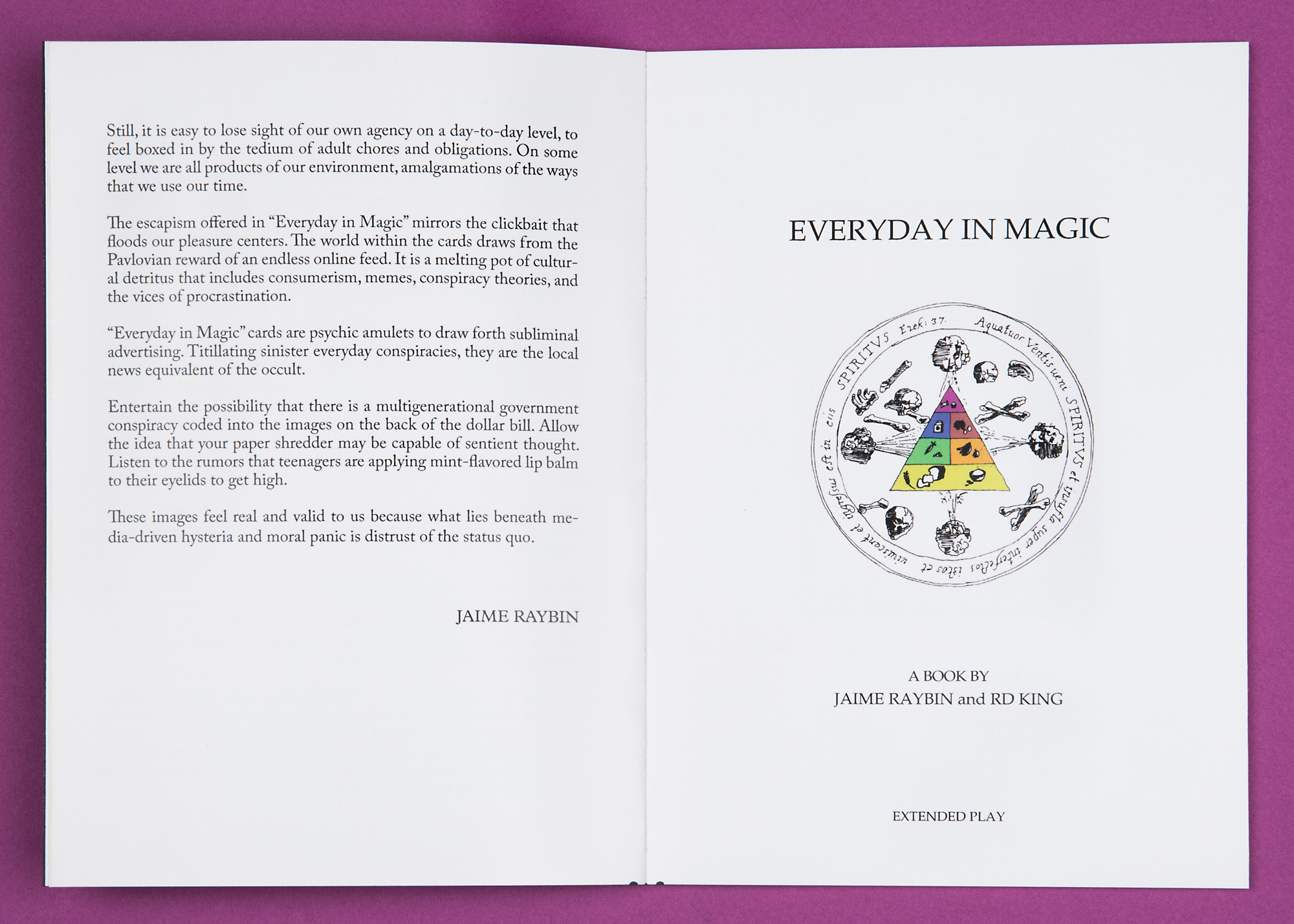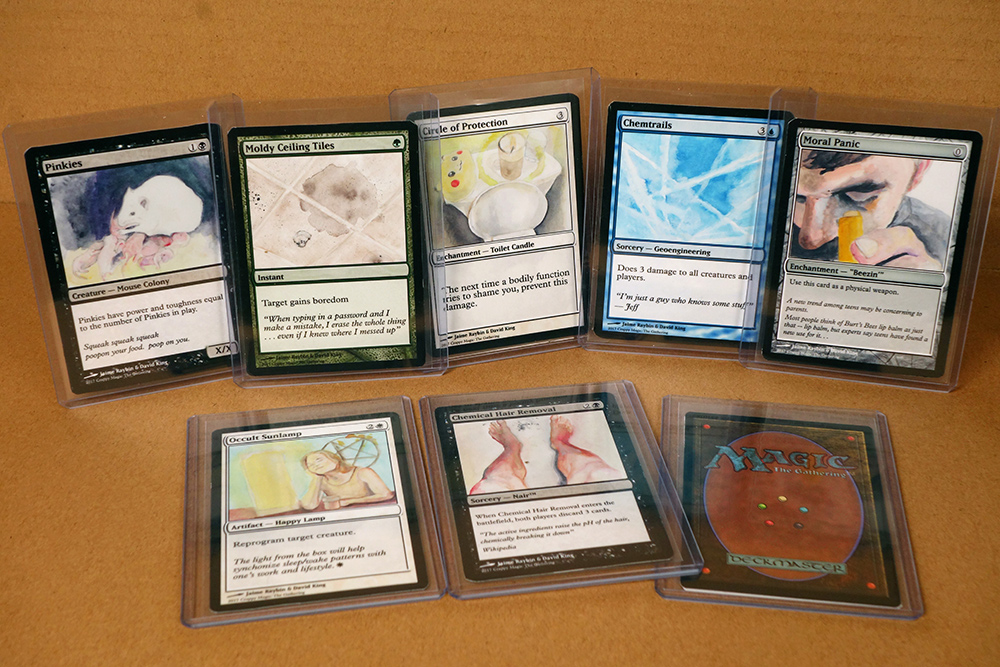"Everyday in Magic" is a book I made with David King. It anthologizes our version of cards from the game Magic: The Gathering.