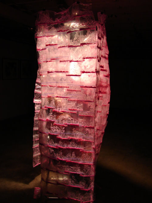 I like using materials that have intimate, personal associations. I think the smell helped people engage. The piece is open-ended, some people said it reminded it of their grandmother’s house, or their stomach ulcer, or they just liked the bright color.